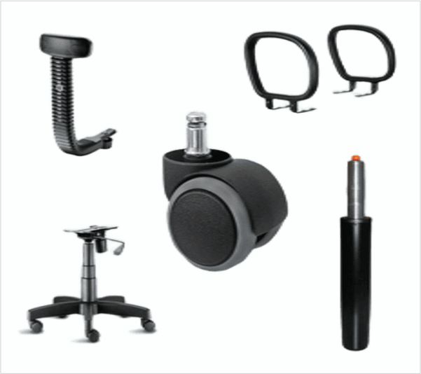 Fazemos a substituição de peças danificadas em cadeiras fixas ou giratórios: rodinhas (rodízios), braços, pistões, flanges, sapatas, bases, pés, etc.